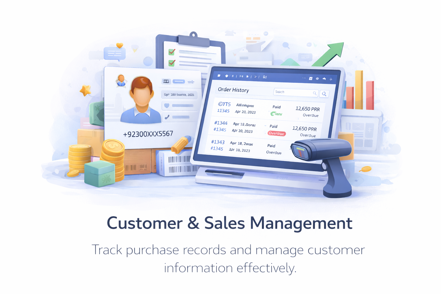 Save customer records and track purchase history.