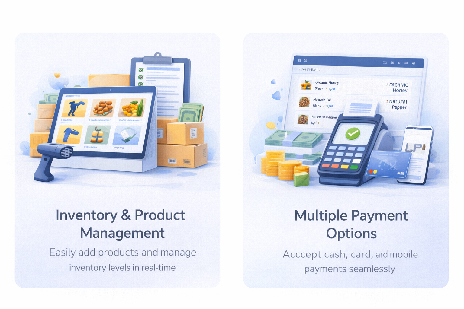 Fast billing, barcode scanning and real-time inventory updates.